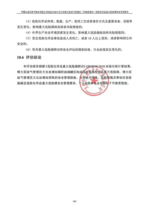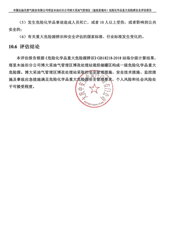 中国石油天然气股份有限公司塔里木油田分公司博大采油气管理区危险化学品重大危险源评估报告 |