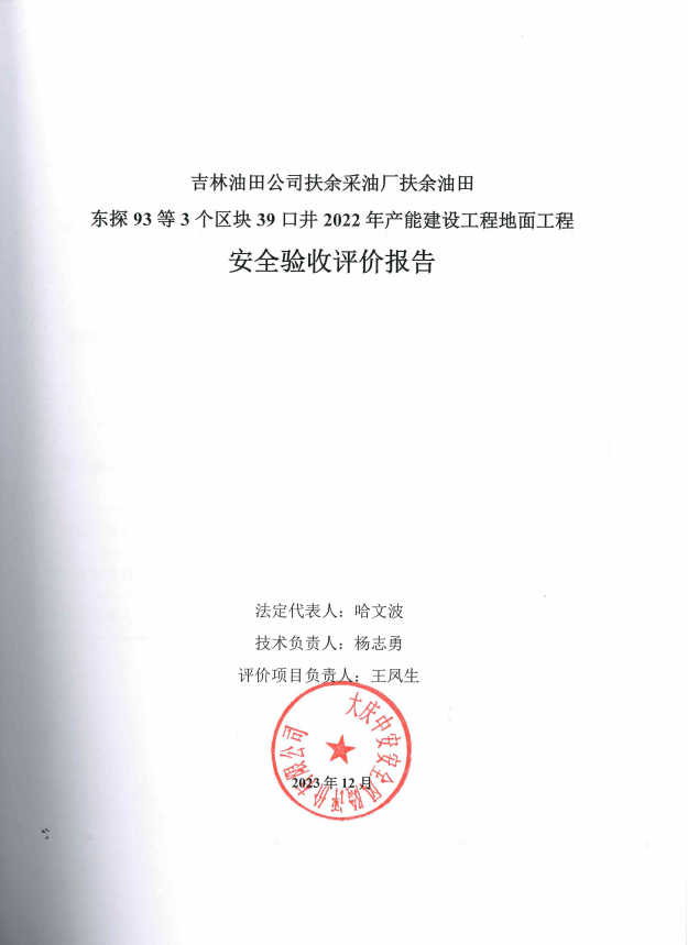 吉林油田公司扶余采油厂扶余油田东探93等3个区块39口井2022年产能建设工程地面工程 安全验收评价报告