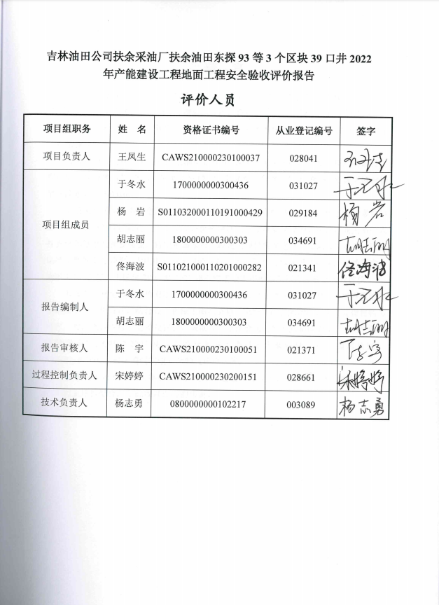 吉林油田公司扶余采油厂扶余油田东探93等3个区块39口井2022年产能建设工程地面工程安全验收评价报告 |