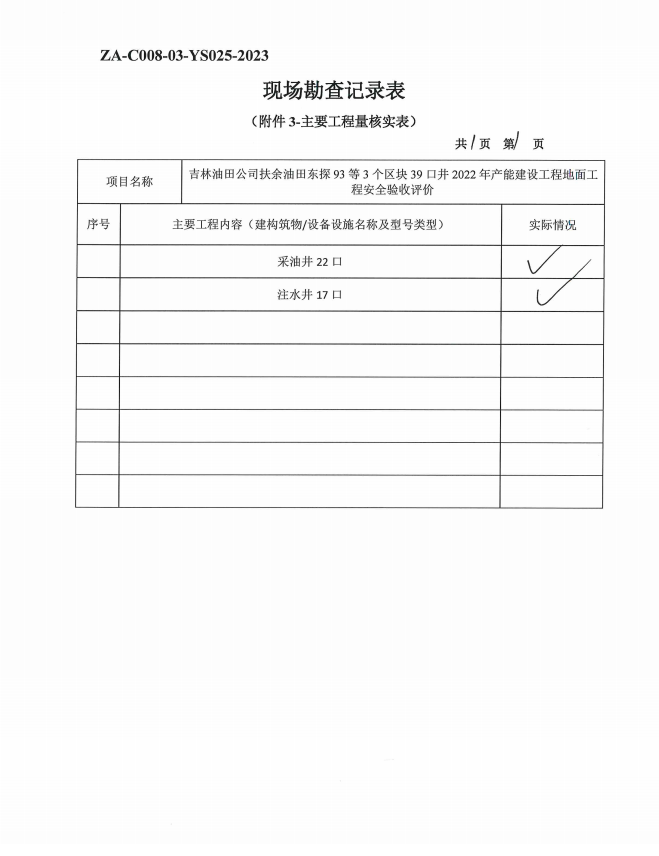 对吉林油田公司扶余采油厂扶余油田东探93等3个区块39口井2022年产能建设工程地面工程项目运行管理和监督制度齐全,经现场勘察,安全设施设置情况良好,经过符合性检查,符合法律、法规和标准规范的要求,具备安全验收条件。 |