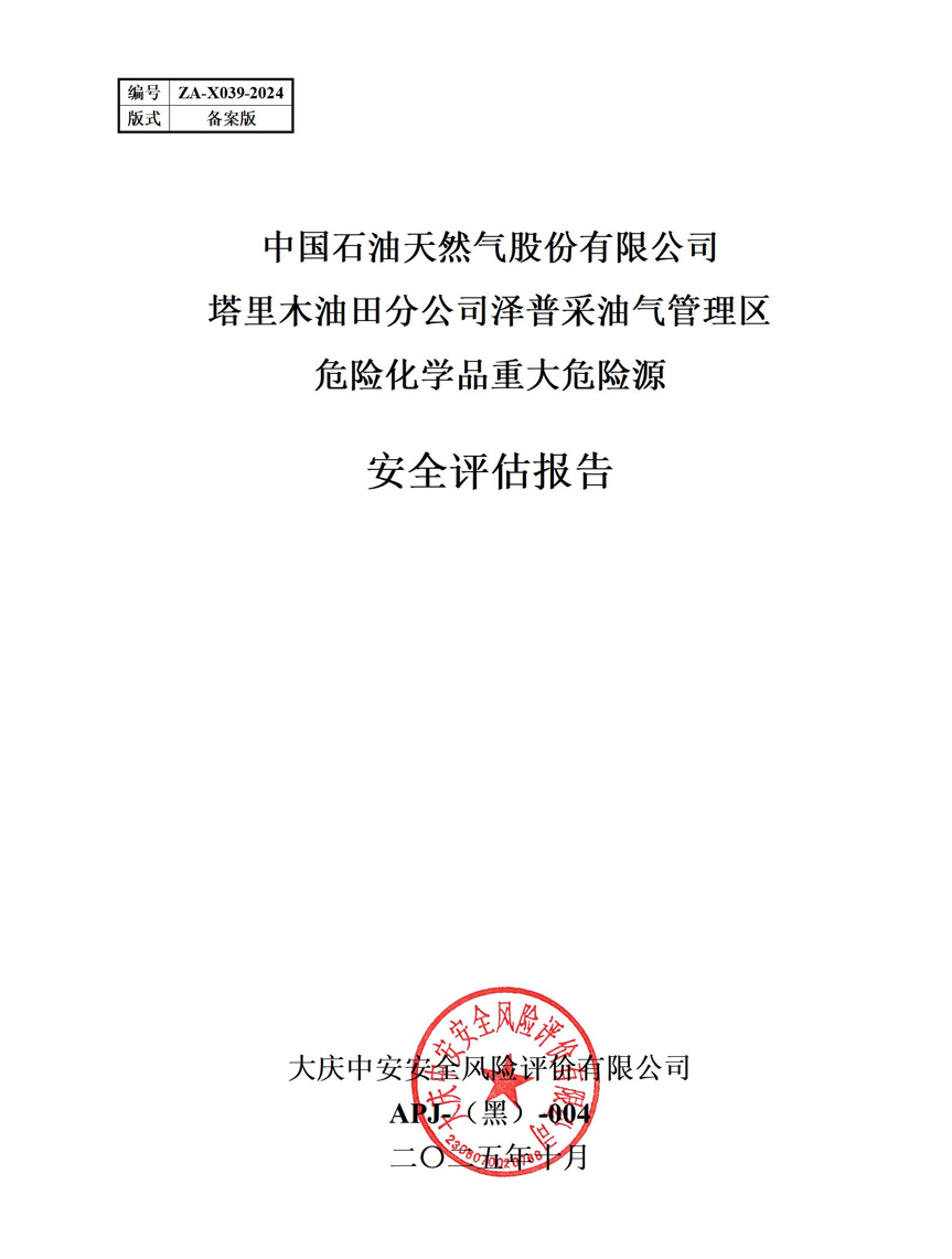 中国石油天然气股份有限公司塔里木油田分公司泽普采油气管理区危险化学品重大危险源安全评估报告 |