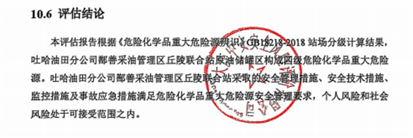 中国石油天然气股份有限公司吐哈油田分公司鄯善采油管理区丘陵联合站危险化学品重大危险源安全评估报告