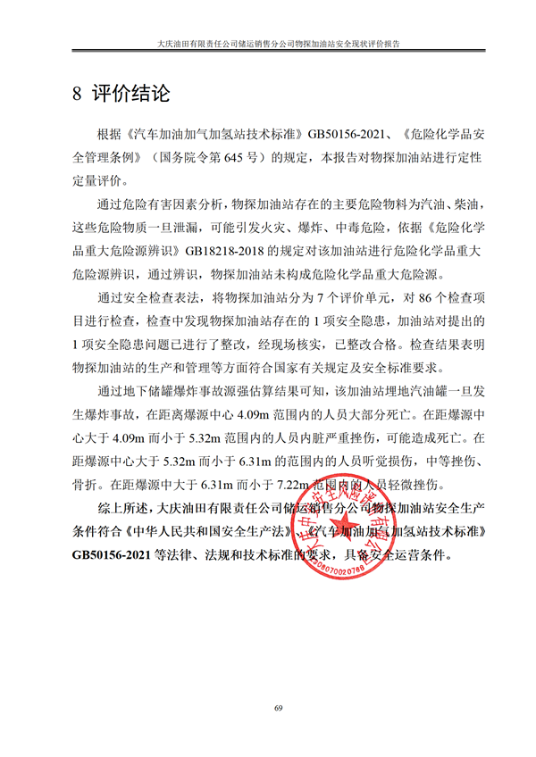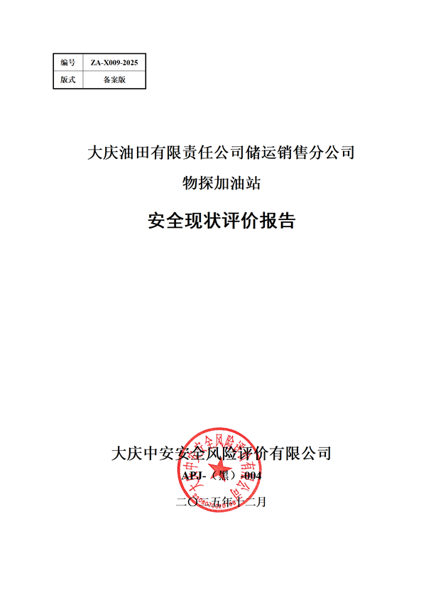 大庆油田有限责任公司储运销售分公司物探加油站安全现状评价报告