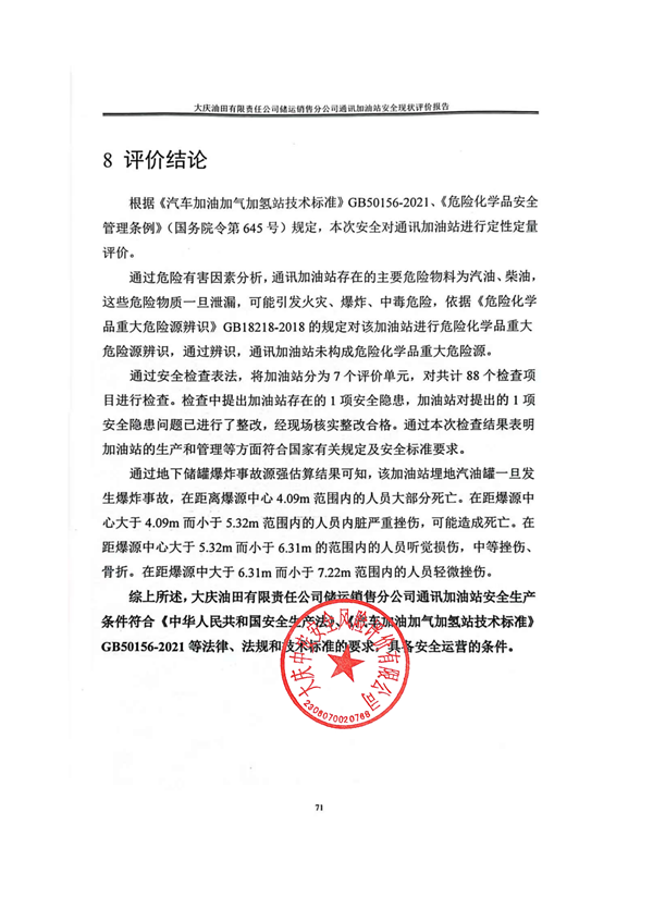 大庆油田有限责任公司储运销售分公司通讯加油站安全现状评价报告
