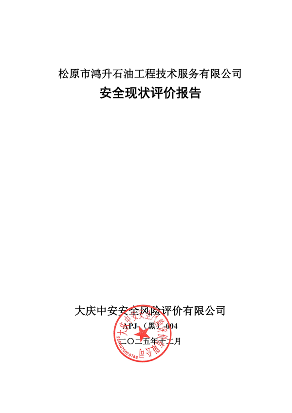 松原市鸿升石油工程技术服务有限公司安全现状评价报告 |