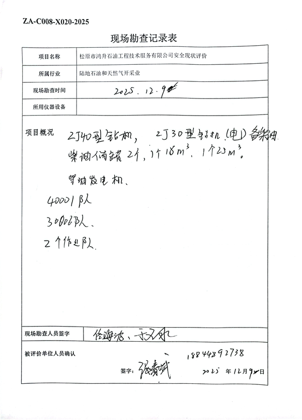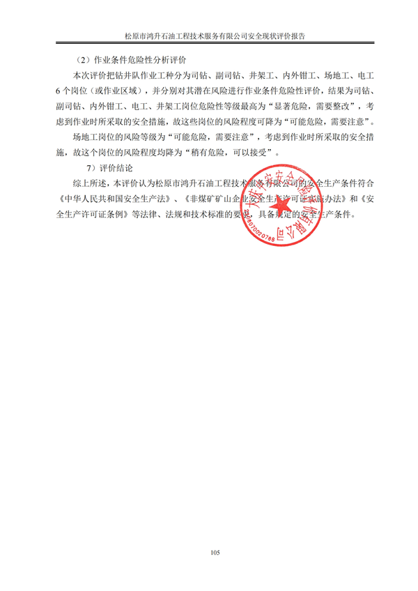 主要对松原市鸿升石油工程技术服务有限公司钻井的设备设施和生产作业活动,以及安全管理情况进行安全现状评价。 |