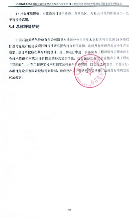 中国石油天然气股份有限公司塔里木油田分公司塔里木克拉苏气田克深24区块巴什基奇克组产能建设项目安全预评价