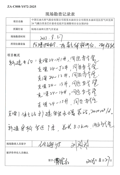中国石油天然气股份有限公司塔里木油田分公司塔里木克拉苏气田克深24区块巴什基奇克组产能建设项目安全预评价 |