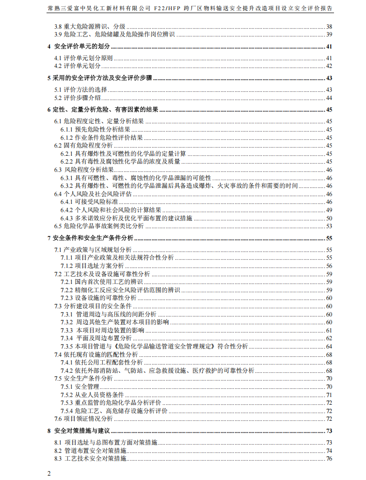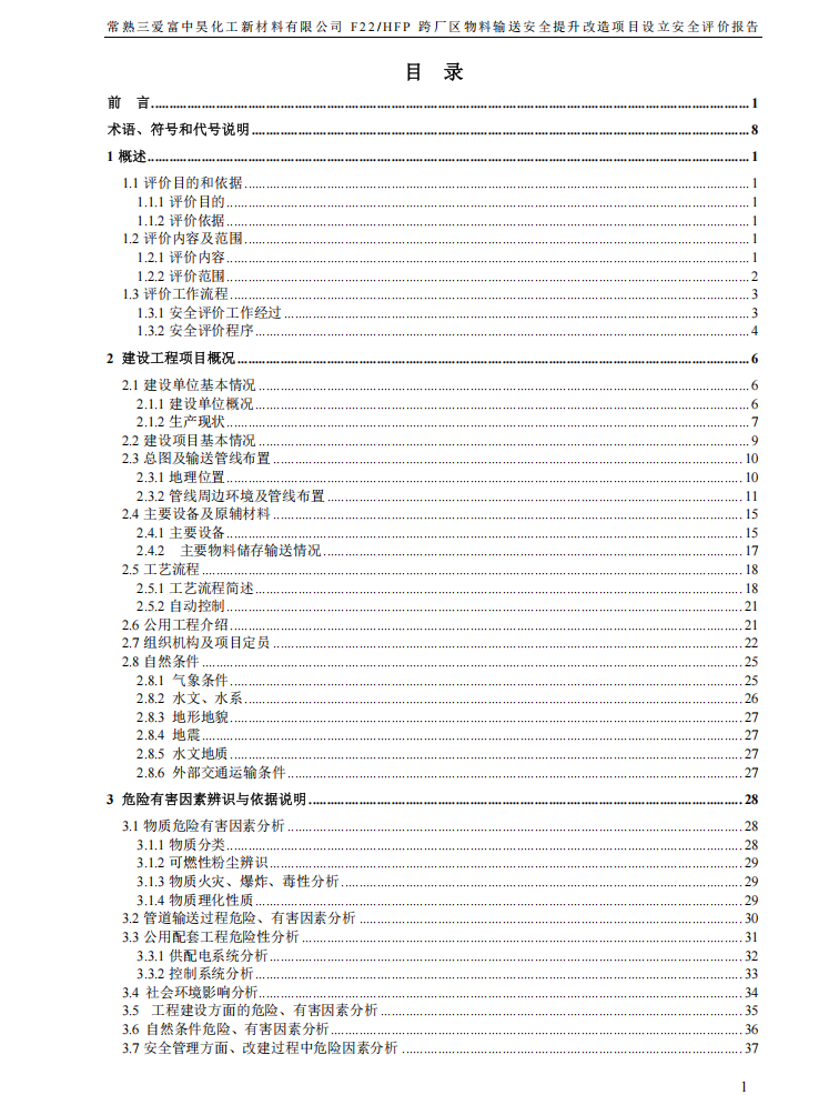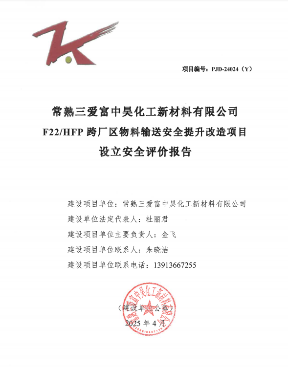 常熟三爱富中昊化工新材料有限公司F22/HFP跨厂区物料输送安全提升改造项目设立安全评价 |