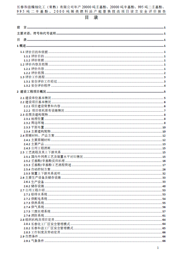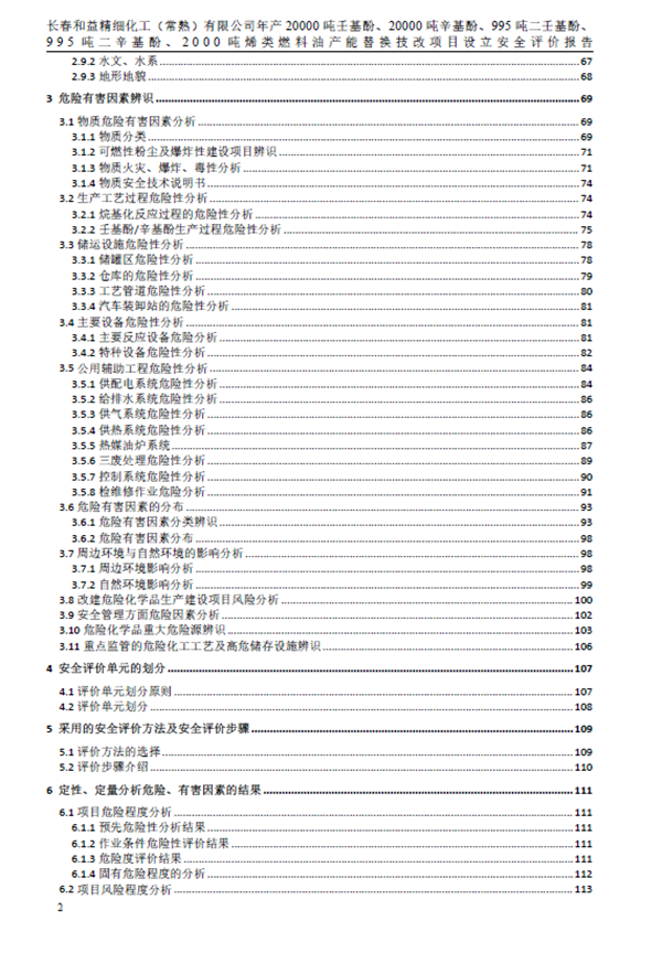 长春和益精细化工(常熟)有限公司年产20000吨壬基酚、20000吨辛基酚、995吨二壬基酚、995吨二辛基酚、2000吨烯类燃料油产能替换技改项目安全评价报告