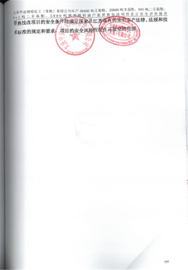 长春和益精细化工(常熟)有限公司年产20000吨壬基酚、20000吨辛基酚,995吨二壬基酚、995吨二辛基酚、2000吨烯类燃料油产能替换技改项目的安全条件能满足国家及江苏省有关安全生产法律、法规和技术标准的规定和要求,项目的安全风险程度在可接受的范围 |
