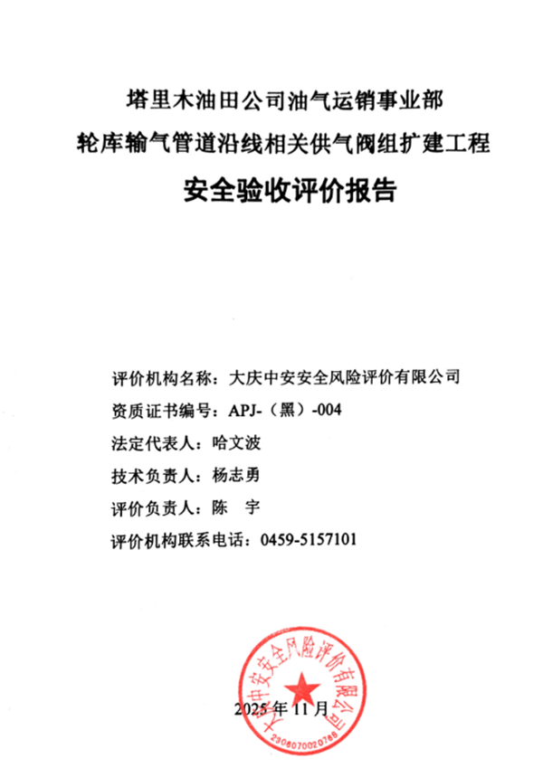 塔里木油田公司油气运销事业部轮库输气管线沿线相关供气阀组扩建工程安全验收报告 |