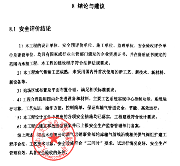 综上所述,塔里木油田公司油气运销事业部轮库输气管线沿线相关供气阀组扩建工程序合法,工艺技术可靠,安全设施符合“三同时”要求,试运行情况良好,安全生产管理有效,具备安全验收的条件。 |