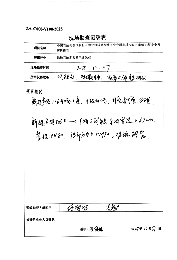 中国石油天然气股份有限公司塔里木油田分公司羊塔506井集输工程安全预评价报告