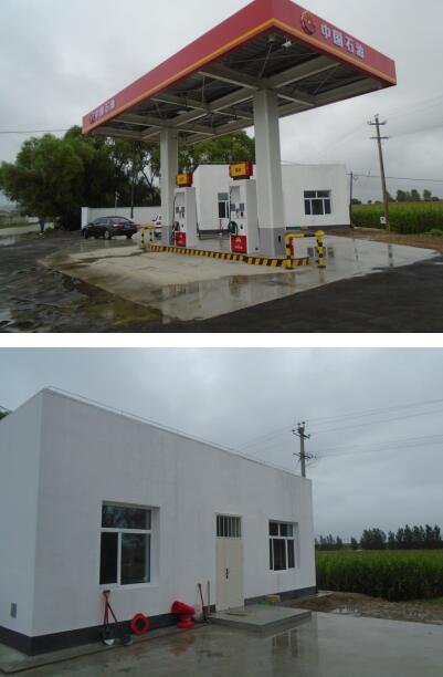 1、本站新建非承重罐区,新建30m3SF双层柴油油罐2座(1汽1柴)新建双层油罐及双层管道防渗漏检测系统;新建成品防渗操作井及非承重井盖;新建卸油防溢阀;新建卸油口箱;新建卸油静电接地报警系统;利旧人体静电释放装置; 2、新建紧急切断系统,新建高清监控系统,新建声光报警系统,新建液位仪控制器及探棒,线路重新敷设; 3、新建卸油油气回收及分散式加油油气回收系统;加油工艺管道采用导静电双层热塑性塑料管道,其他工艺管道均采用20#无缝钢管; 4、新建一层站房,砖混结构,使用面积69.5m2,电锅炉采暖; 5、新建罩棚,水平投影面积72m2,新建加油岛1座,新建防撞柱2个;新建2台双枪单油品自吸泵加油机(1台双枪柴油加油机,1台双枪汽油加油机,汽油加油机为油气回收型);新建混凝土防渗加油机底槽; 6、新建硬化地面350m2,新建2.2m实体围墙37m,新建路缘石约25m。 |