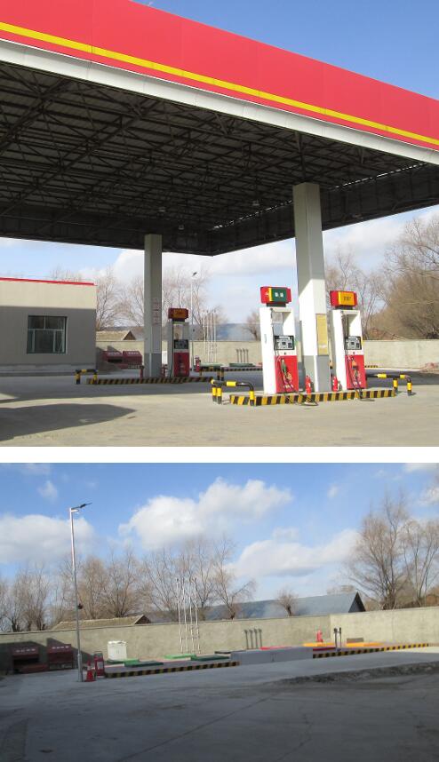 1)原油罐清洗,检测合格后拆除,吊装外运;新建非承重SF罐区1座,设置30m³双层汽油储罐3台、30m³双层柴油储罐2台,油罐采用混凝土防渗操作井及非承重井盖10套;工艺管线拆除并重新敷设,加油管线采用导静电双层热塑性塑料,其他工艺管线采用20#无缝钢管;设置卸油和分散式加油油气回收系统;新建6孔成品卸油口箱1座(底部防渗)。 2)利旧改建站房1座,建筑面积161.12㎡。 3)罩棚由专业公司进行检测合格后利旧,螺栓球网架结构,水平投影面积429㎡,净空高度5.5m。 4)修复4座加油岛,新建防撞柱8个;检测合格利旧4台双枪单油品自吸式汽油加油机(汽油枪带油气回收功能)、2台双枪单油品自吸式柴油加油机;新建混凝土防渗加油机底座。 5)新增双层油罐及双层管线渗漏监测系统;新建紧急切断系统、卸油静电接地系统、人体静电释放装置、声光报警; 6)修复硬化地面,面积200㎡;利旧高2.2米实体围墙148m。 |