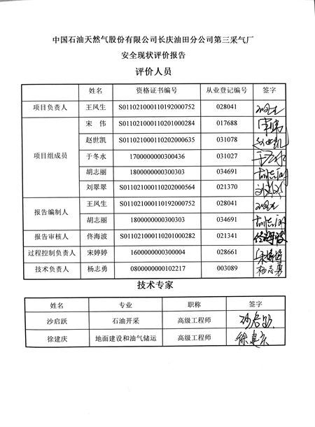 中国石油天然气股份有限公司长庆油田分公司第三采气厂安全现状评价 |