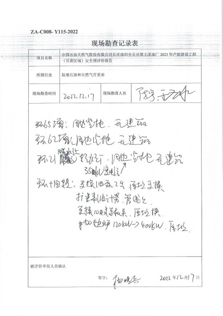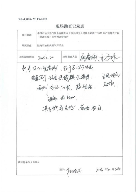 中国石油天然气股份有限公司长庆油田分公司第七采油厂2023年产能建设工程(甘肃区域)安全预评价 |