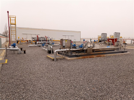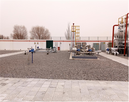 (2)苏36-5集气站:拆除站内原有的埋地污水罐和2m3/h采出液外输泵一体化集成装置,在原址新建1具50m3采出液缓冲罐,利旧1具7m3/h采出液外输泵一体化集成装置,站外新建1台25×104m3/d螺杆式压缩机。