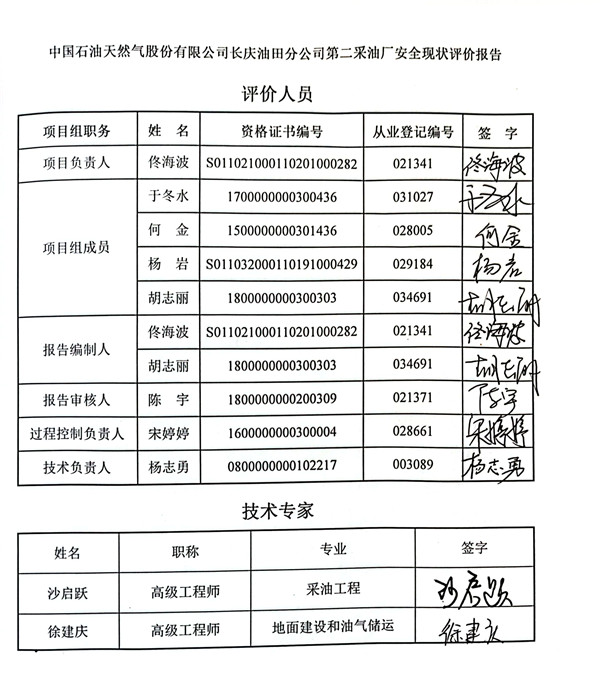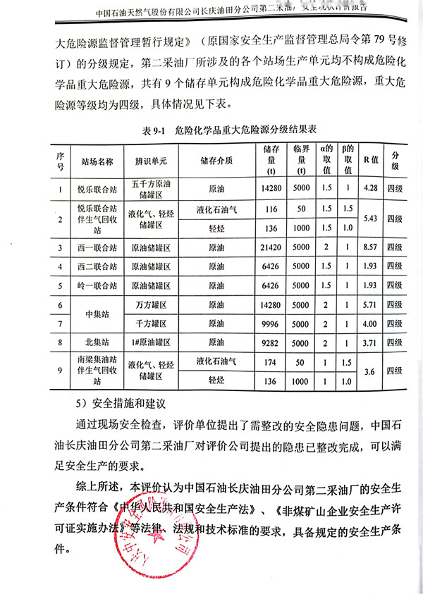 中国石油天然气股份有限公司长庆油田分公司第二采油厂安全现状评价 |