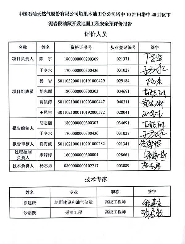 中国石油天然气股份有限公司塔里木油田分公司塔中10油田塔中40井区下泥岩段油藏开发地面工程安全预评价报告