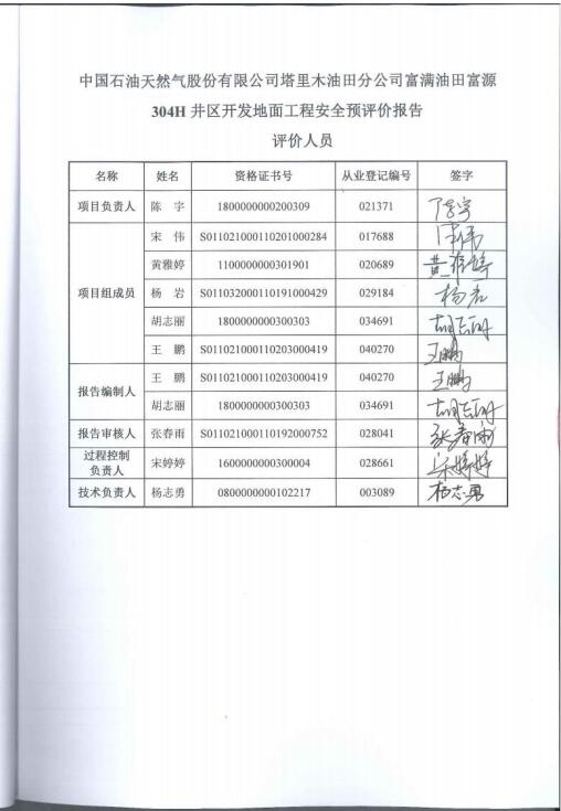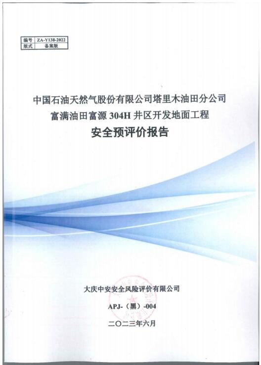 中国石油天然气股份有限公司塔里木油田分公司富满油田富源304H井区开发地面工程 安全评价报告