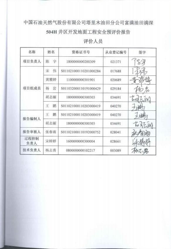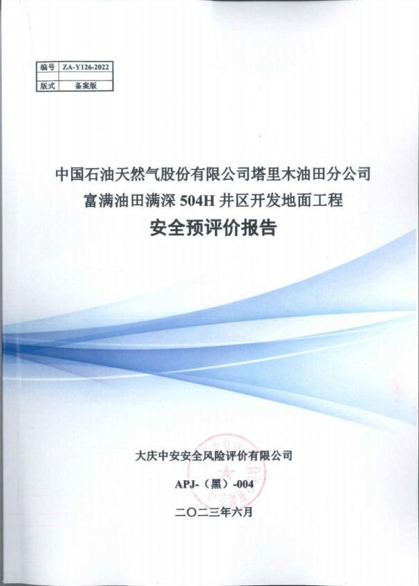 中国石油天然气股份有限公司塔里木油田分公司富满油田满深504H井区开发地面工程 安全评价报告