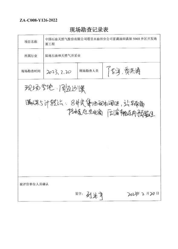 满深5号计转站现状及周边镜场现状调查、新建井场现状调查 |