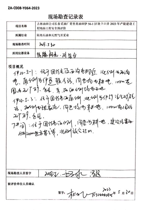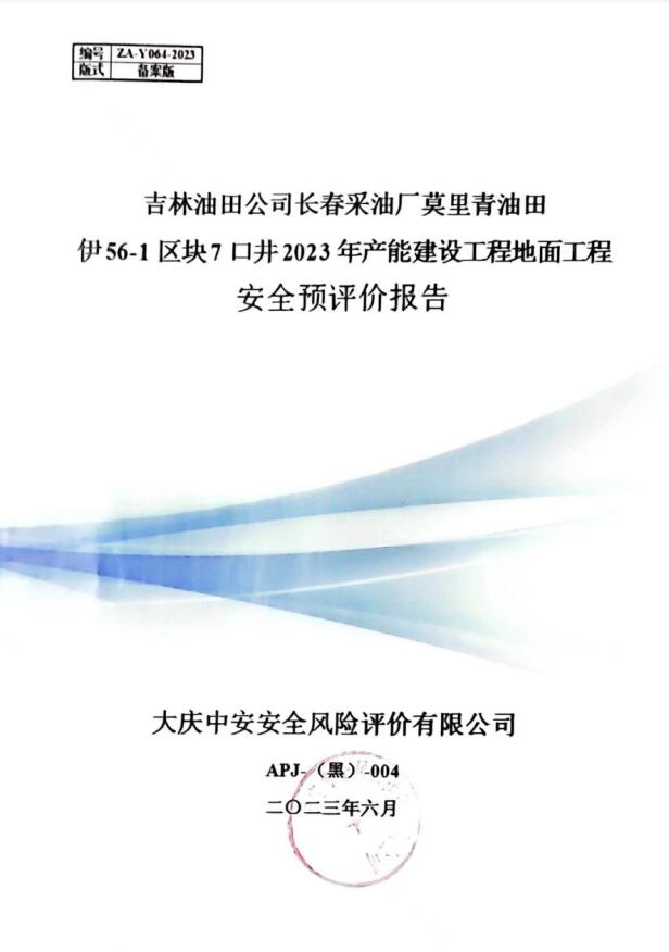 吉林油田公司长春采油厂莫里青油田伊56-1区块7口井2023年产能建设工程地面工程安全评价报告
