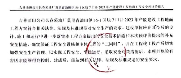 吉林油田公司长春采油厂莫里青油田伊56-1区块7口井2023年产能建设工程地面工程方案符合相关法律、法规及标准规范对安全生产的要求。建设单位应在其今后的设计、施工和运行中进一步落实本工程方案提出的安全技术措施和本次预评价提出的补充安全措施,确实保证工程安全设施和主体工程的“三同时”,并在工程竣工投产后切实加强安全生产管理,以实现工程安全、平稳运行,采取安全对策措施后,本项目危险有害因素能够得到控制,建成后,能达到有关法律、法规及标准规定的安全要求。 |