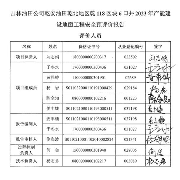 吉林油田公司乾安油田乾北地区乾118区块6口井2023年产能建设地面工程安全预评价报告 |