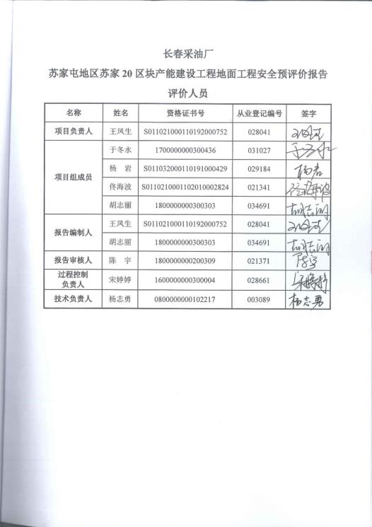 长春采油厂苏家屯地区苏家20区块产能建设工程地面工程安全预评价报告 |