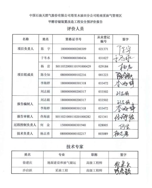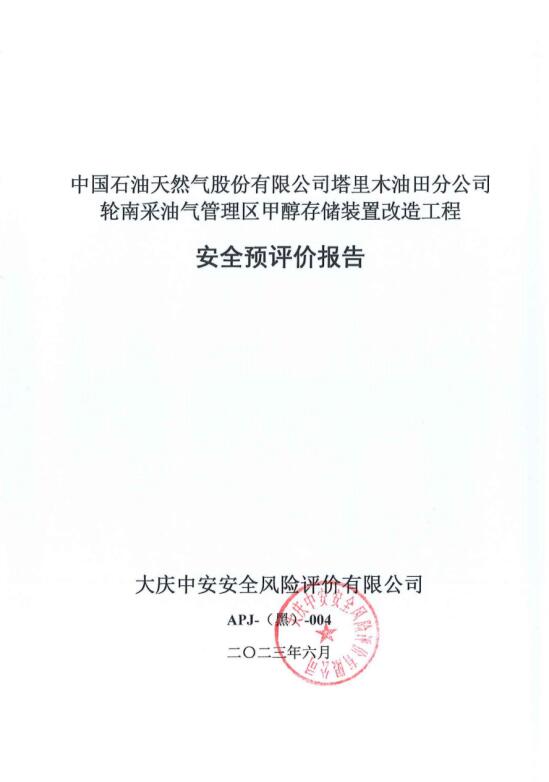 中国石油天然气股份有限公司塔里木油田分公司轮南采油气管理区甲醇存储装置改造工程安全预评价报告 |