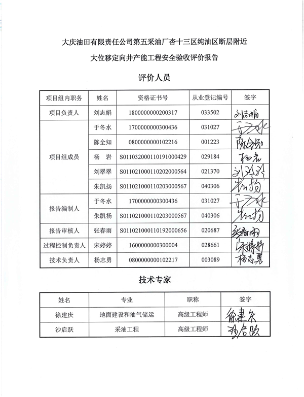 大庆油田有限责任公司第五采油厂杏十三区纯油区断层附近大位移定向井产能工程安全验收评价 |