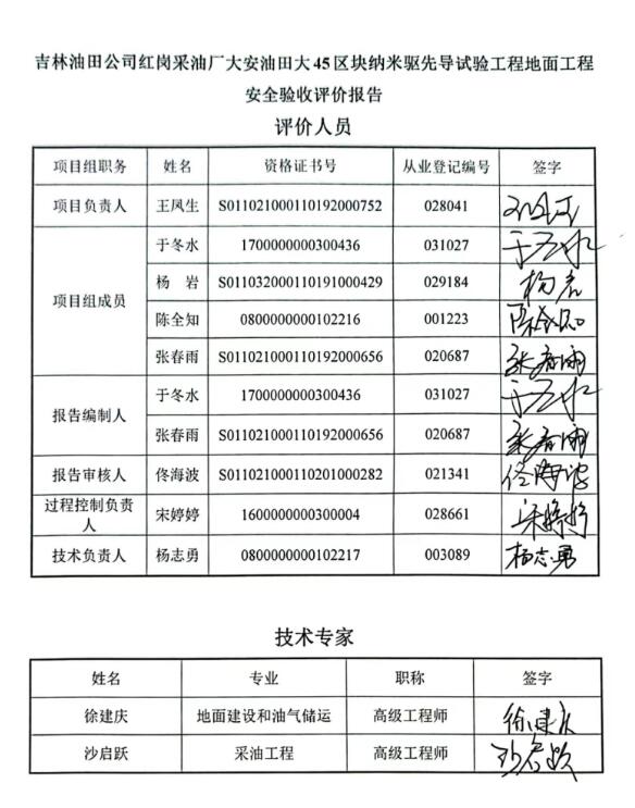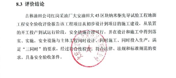 吉林油田公司红岗采油厂大安油田大32区块13口井2021年产能建设地面工程安全验收评价报告该工程项目从初步设计到项目的施工建设,从装置的开工投产到试运行阶段,安全措施合理可行,并在设计和施工中得到落实、实施,安全设施与主体工程同时设计、同时施工、同时投入生产,满足“三同时”的要求,经过符合性检查,符合法律、法规和标准规范的要求,具备安全验收条件。 |