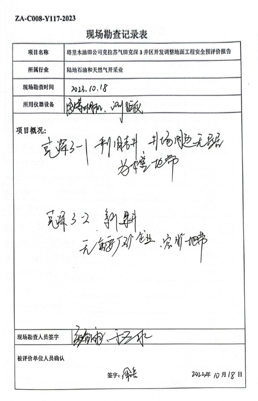 塔里木油田公司克拉苏气田克深3井区开发调整地面工程安全预评价报告 |