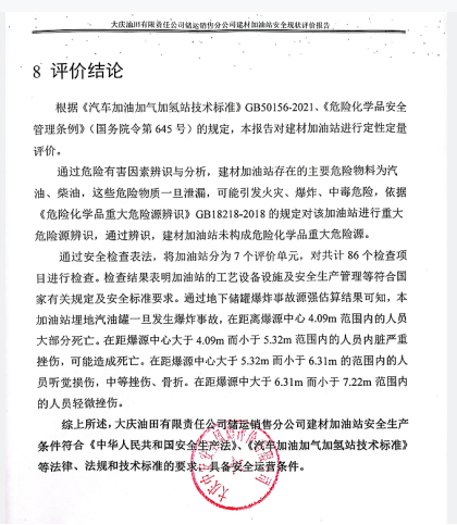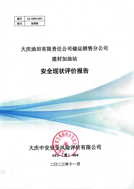 大庆油田有限责任公司储运销售分公司建材加油站安全现状评价报告 |