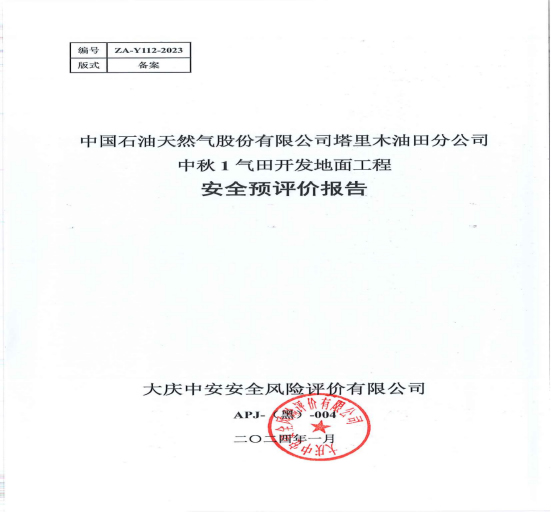 中国石油天然气股份有限公司塔里木油田分公司中秋1气田开发地面工程安全预评价报告 |