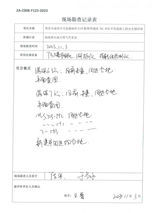 塔里木油田公司富满油田FI19断裂带满深701井区开发地面工程安全验收评价报告 |