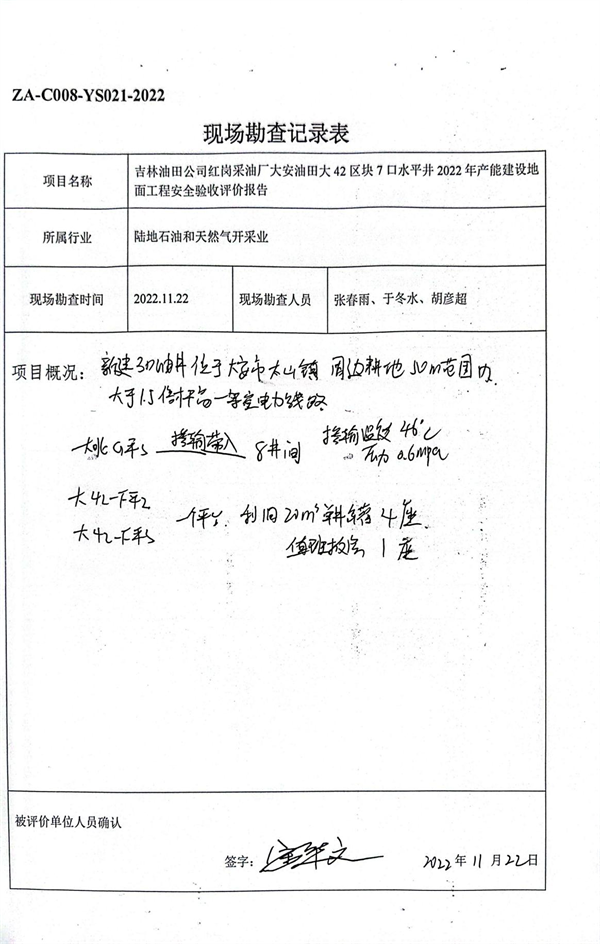 吉林油田公司红岗采油厂大安油田大42区块7口水平井2022年产能建设地面工程安全验收评价报告 |