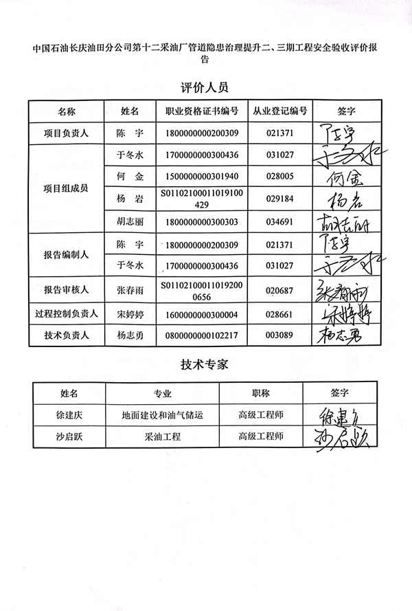 中国石油长庆油田分公司第十二采油厂管道隐患治理提升二、三期工程安全验收评价报告 |