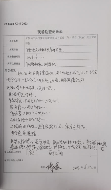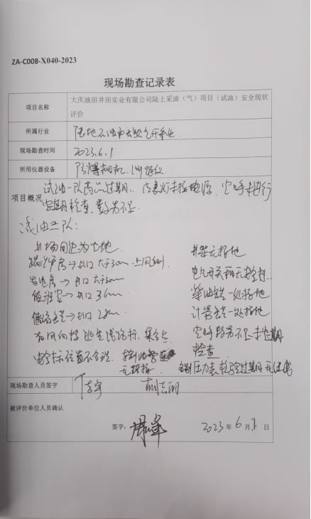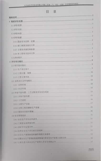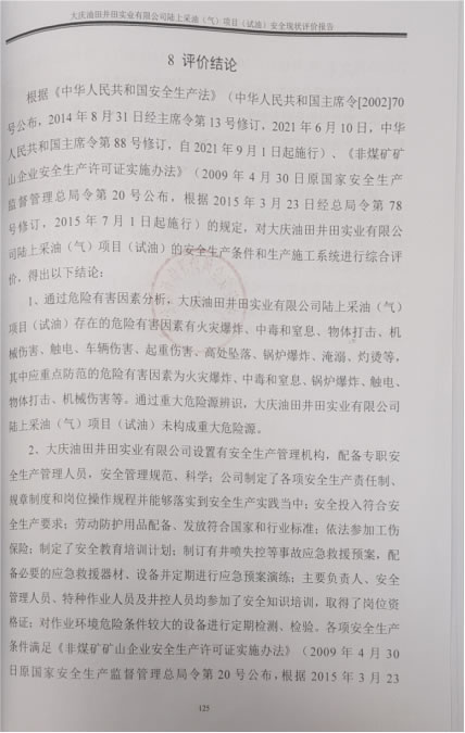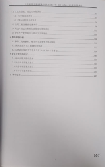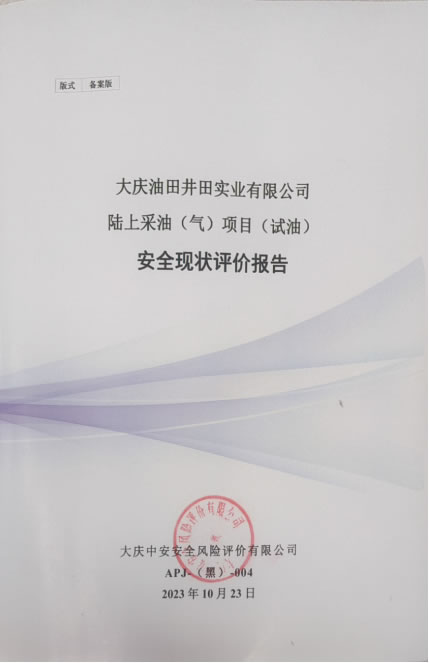 大庆油田井田实业有限公司陆上采油(气)项目(试油)安全现状评价报告 |