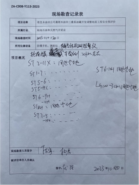 到现场开展安全评价工作的人员名单 |