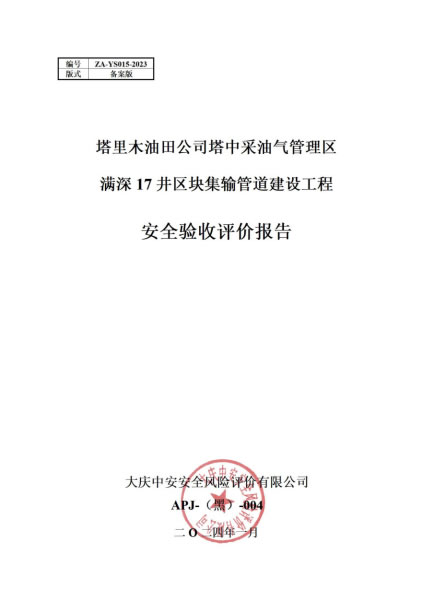 塔里木油田公司塔中采油气管理区满深17井区块集输管道建设工程安全验收评价报告 |