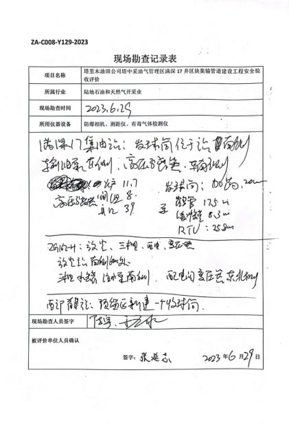 塔里木油田公司塔中采油气管理区满深17井区块集输管道建设工程安全设施符合“三同时”要求,试运行情况良好,安全生产管理有效,具备安全验收要求。 |