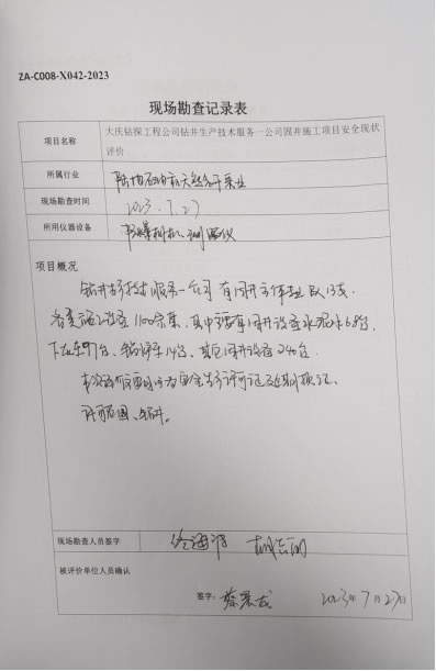 大庆钻探工程公司钻井生产技术服务公司固井施工项目安全现状评价报告信息公示表