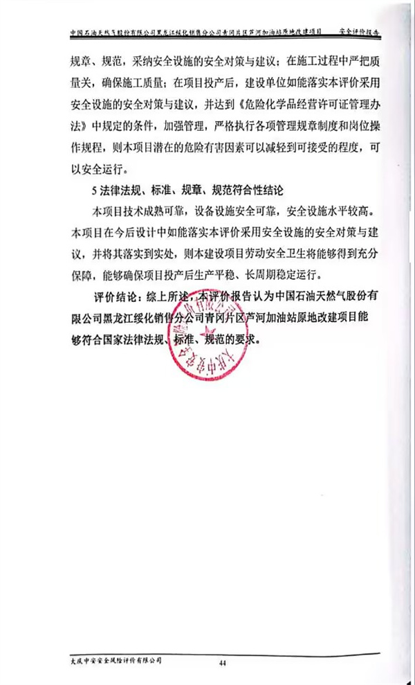 中国石油天然气股份有限公司黑龙江绥化销售分公司青冈片区芦河加油站原地改建项目安全预评价 |