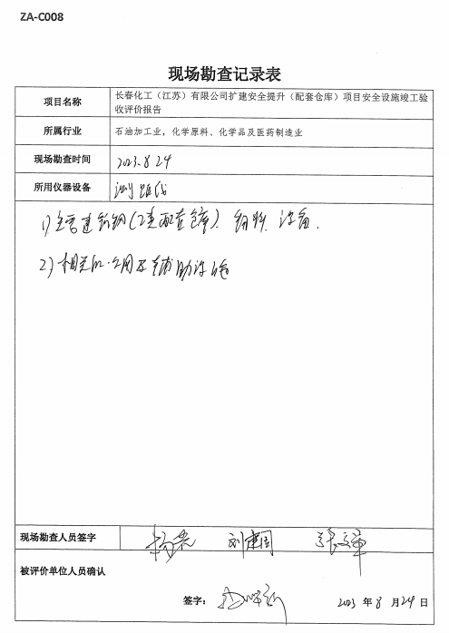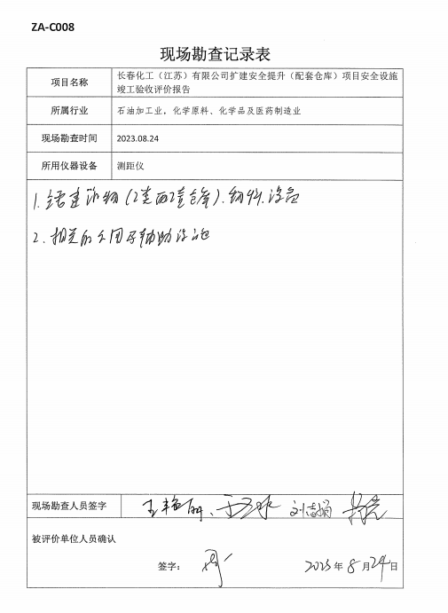 长春化工(江苏)有限公司扩建安全提升(配套仓库)项目安全设施竣工验收评价报告 |