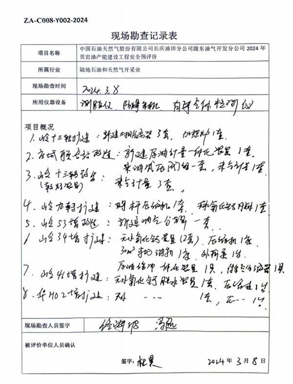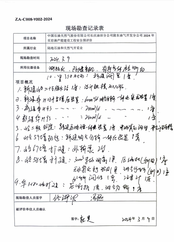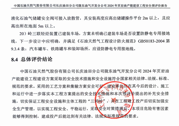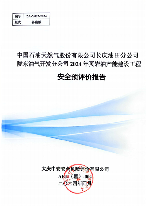 中国石油天然气股份有限公司长庆油田分公司陇东油气开发分公司2024年页岩油产能建设工程安全预评价报告 |