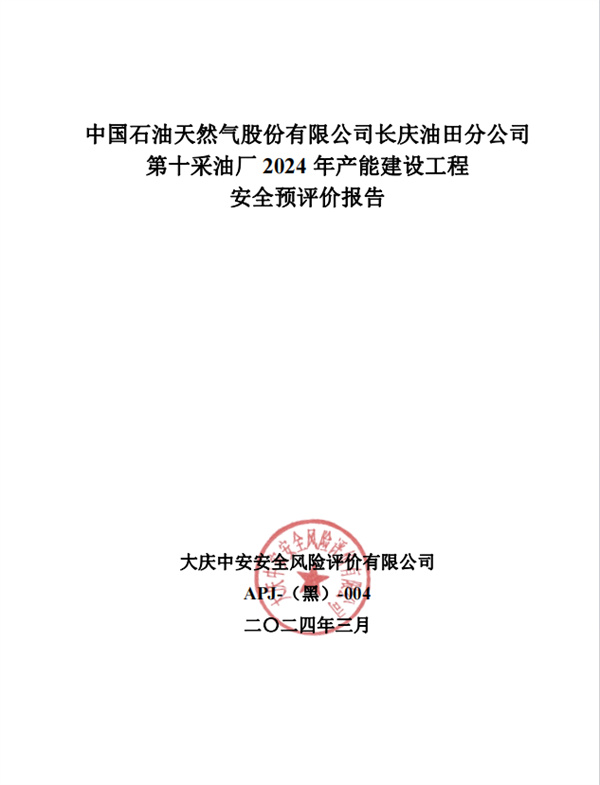 中国石油天然气股份有限公司长庆油田分公司第十采油厂2024年产能建设工程安全预评价报告 |